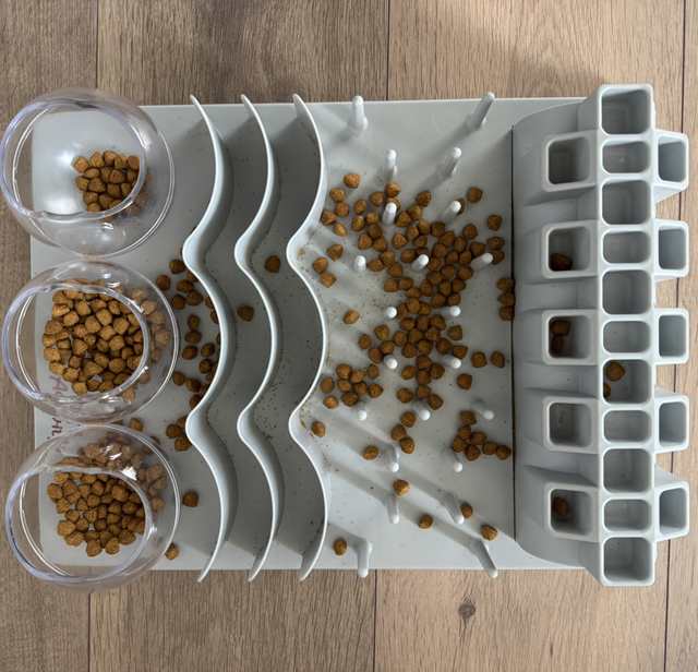 Alors voici le plateau idéal pour Maine-coon, norvégien, ragdoll et autres chats XL qui pourront glisser sans problème leur patte pour attraper leurs croquettes 🐾