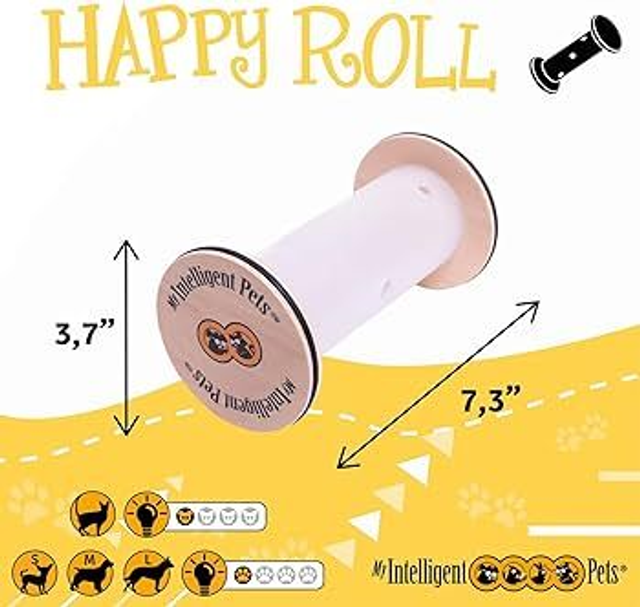 Le Happy Roll se compose d’un cylindre transparent dans lequel vous glissez des friandises sèches. En le faisant rouler, votre animal doit repérer les 3 ouvertures et déclencher la chute des gourmandises. Conçu pour chat ou chien (petit et moyen gabarits), ce jeu d’intelligence simple et intuitif stimule la curiosité, la concentration, la dextérité et l’odorat de votre compagnon, tout en renforçant votre lien grâce au renforcement positif.