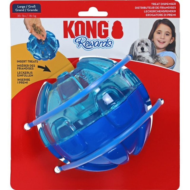 Une balle roulante et amusante pour votre chat et surtout aussi solide qu'amusant ! Le KONG Rewards libère des récompenses ou les croquettes du repas lorsque celui-ci déplace le jouet d'avant en arrière. La forme en balle de ce jouet permet une forte stimulation mentale ! La libération des croquettes étant imprévisible, elle permet au chat de rester actif pendant le jeu.