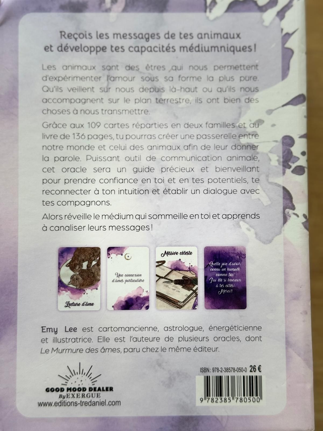 Grâce aux 109 cartes réparties en deux familles et au livre de 136 pages, tu pourras créer une passerelle entre notre monde et celui des animaux afin de leur donner la parole. Cet oracle sera un guide précieux et bienveillant pour prendre confiance en toi et en tes potentiels, te reconnecter à ton intuition et établir un dialogue avec tes compagnons.