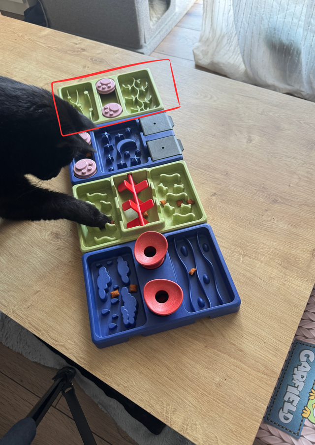 Le mini puzzle est une manière amusante d'occuper les chats en cachant de la nourriture, les chats doivent faire de leur mieux en poussant, tournant et ouvrant les pièces.