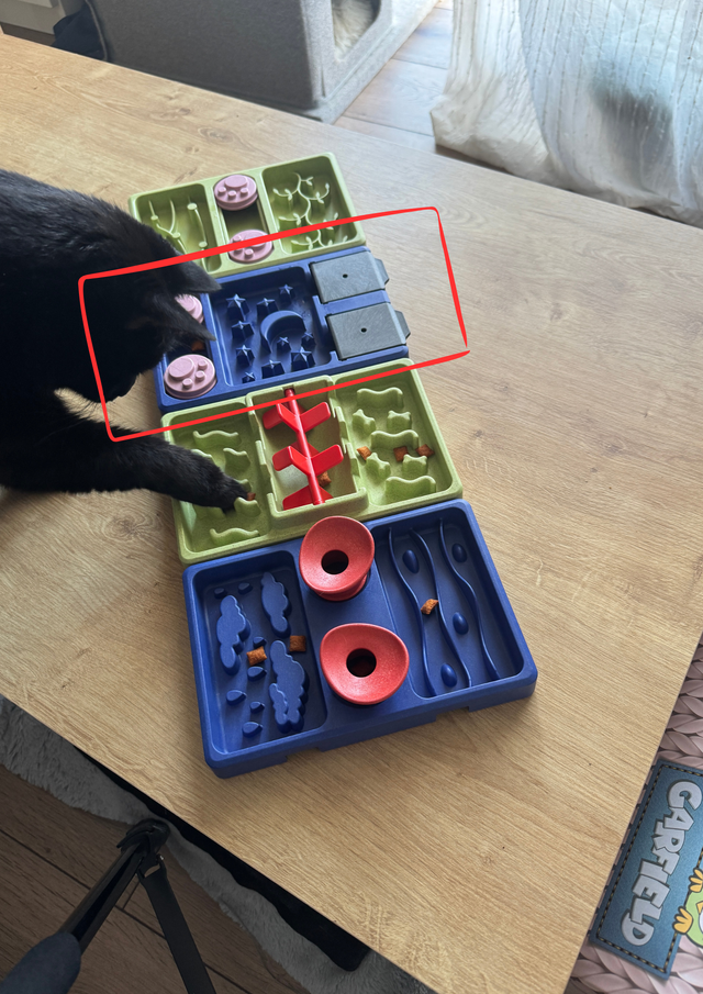 Le mini puzzle est une manière amusante d'occuper les chats en cachant de la nourriture, les chats doivent faire de leur mieux en poussant, tournant et ouvrant les pièces.
