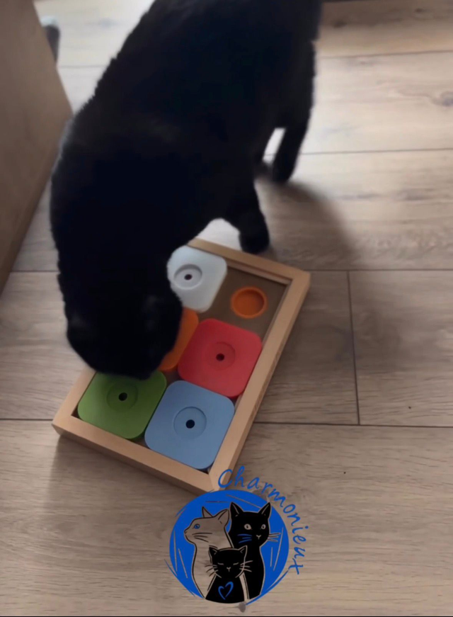 Six cachettes possibles et cinq tuiles déplaçables offrent de la variété et beaucoup de plaisir aux chats avancés. Ainsi, chercher et trouver devient vraiment amusant.
